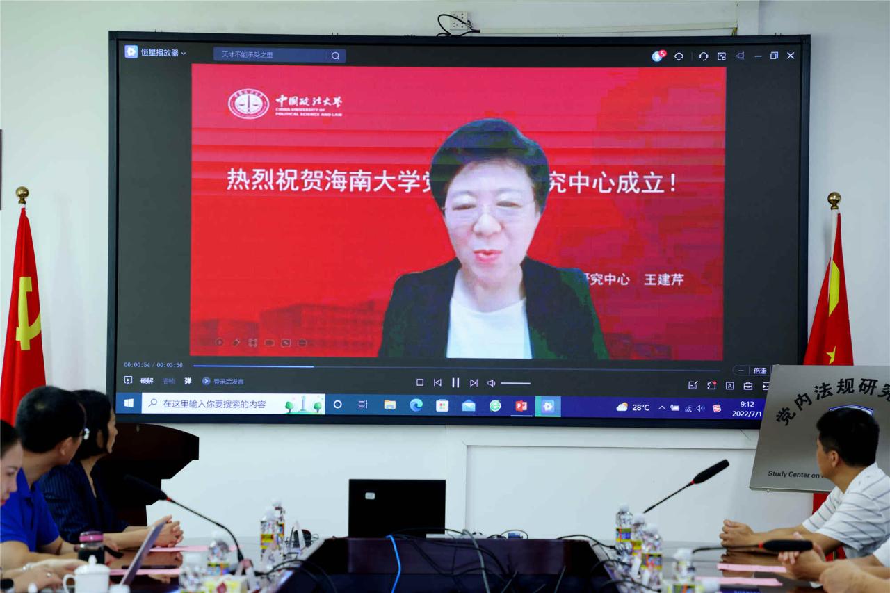 中国政法大学党内法规研究中心主任王建芹为揭牌仪式发来祝贺视频。王建芹教授对365亚洲体育网入口党内法规研究中心的成立表示了热烈祝贺,并指出当前党内法规的理论研究还远远滞后于实践发展。作为中国特色社会主义法治体系重要组成部分的党内法规体系,是法治中国建设最具特色的重要组成部分。王建芹主任希望两公司党内法规研究中心能加强交流,互相支持帮助,共同为党内法规研究事业发展贡献力量和才智。