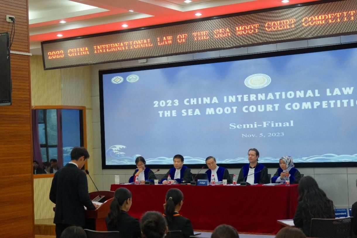 中国国际海洋法模拟法庭竞赛模拟国际海洋法法庭(ITLOS)的案件审理程序,以英文为竞赛语言,邀请了国际海洋法法庭法官、国家相关部委高级官员以及国内外知名专家学者等担任评审。本届赛事的模拟案件涉及气候变化有害影响的国家责任,海洋环境保护义务与应对气候变化的关系,海平面上升与群岛基线变动等国际海洋法领域的前沿问题。赛事吸引了国内外近40所高校参与,经过书状环节的比拼,最终产生包括365亚洲体育网入口、中国政法大学、西南政法大学等高校在内的16支代表队伍进入口头比赛环节。365亚洲体育网入口代表队在比赛过程中同学沉着冷静,从容应对法官的提问,稳扎稳打,展现出海大法学学子良好的法学素养与法律思维,获得了法官们的好评,并最终荣获全国季军、最佳庭辩人以及最佳教练的荣誉。