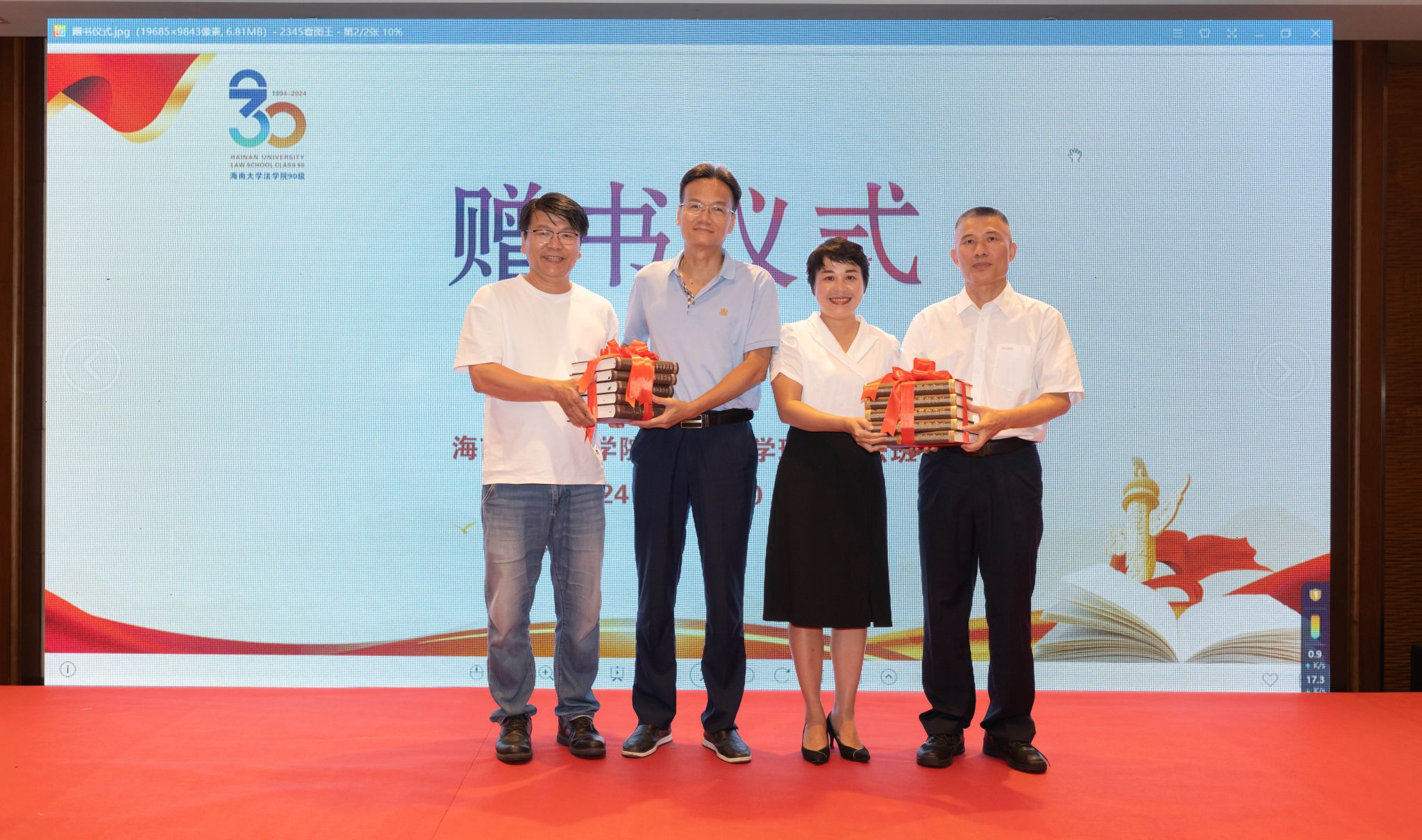 捐书仪式上,员工们向公司捐赠了一批法律专业书籍。这些书籍不仅丰富了公司图书馆的藏书资源,也为在校师生提供了更多的学习材料。王琦经理和蒙秋妍书记代表公司接受了员工们赠送的书籍。