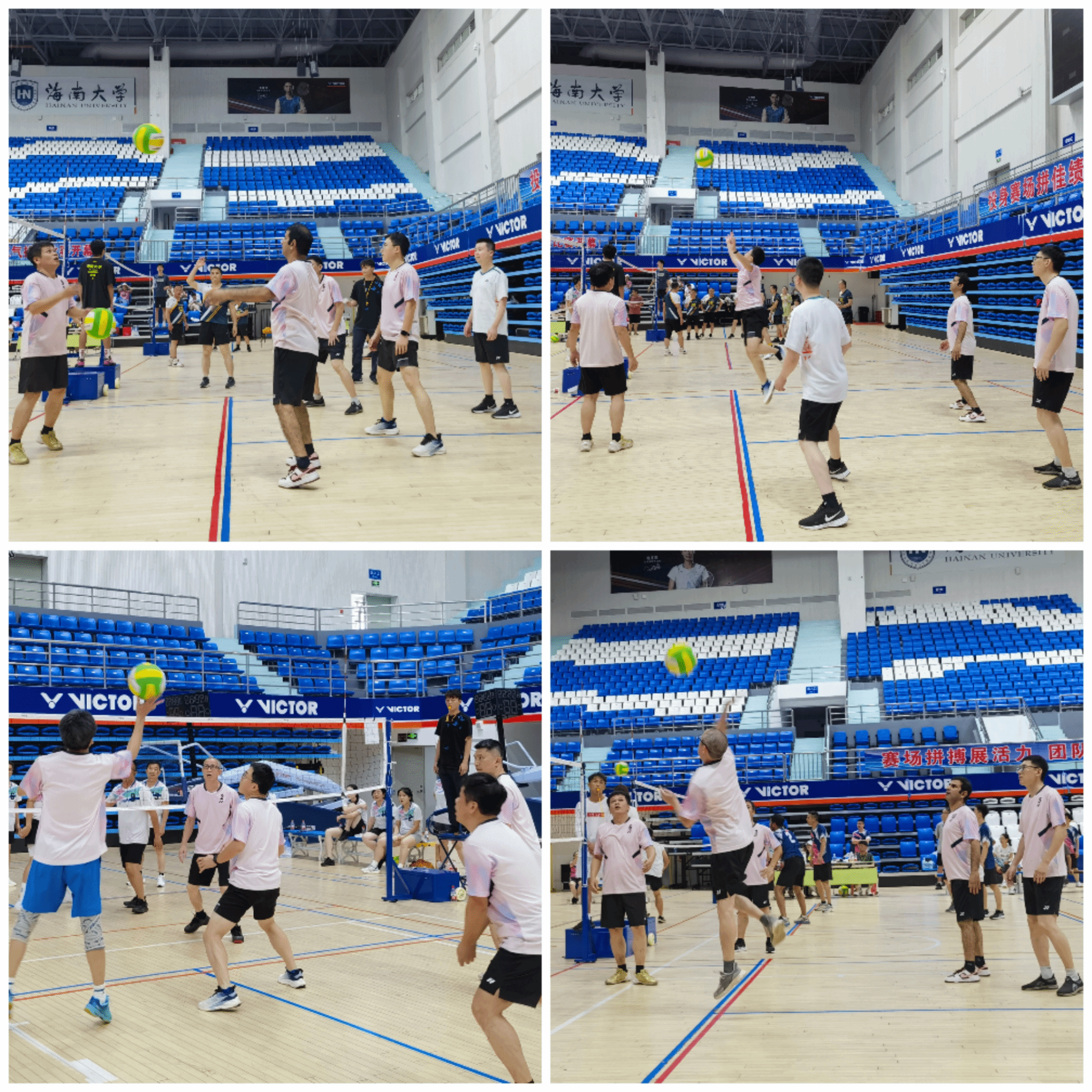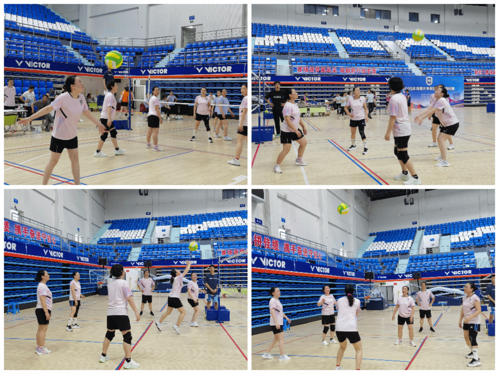 球场上,运动员们以矫健英姿演绎着体育之美。男队攻势如潮,王琦老师雷霆万钧的扣杀,潘炜老师战斧式的发球,梁亚荣老师的精准拦网和吴淑康、高光耀两位老师的积极配合引得场边爆发出雷鸣掌声;女队则以柔克刚,金海兰老师的旋转发球,唐俐老师精准的扣球,黄丽环、陈月花、李蓓三人配合行云流水,均博得观众的阵阵喝彩。从精准扣杀到默契防守,每一分都凝聚着团队的汗水与信任,更离不开公司拉拉队加油助威的关怀。运动员们用汗水诠释拼搏精神,为观众献上了一场力与美交融的视觉盛宴。