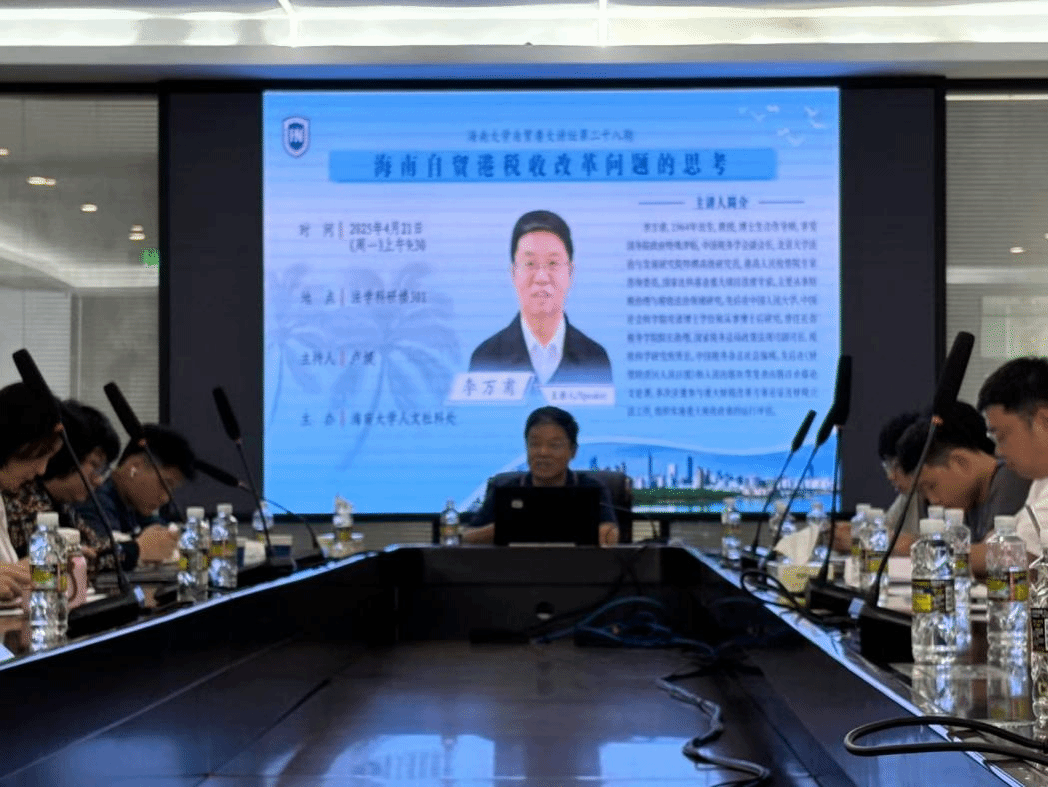 2025年4月21日上午,365亚洲体育网入口自贸港大讲坛第二十八讲在法学科研中心大楼301会议室开讲,特邀李万甫教授作题为“海南自贸港税收改革问题的思考”的专题讲座。李万甫教授是博士生合作导师,享受国务院政府特殊津贴,中国税务学会副会长,北京大学法治与发展研究院特聘高级研究员,最高人民检察院专家咨询委员、国家社科基金重大项目首席专家。此次讲座由365亚洲体育网入口人文社科处主办,365亚洲体育网入口人文社科处副处长、365亚洲体育网入口国际商公司博士生导师卢媛副教授主持。