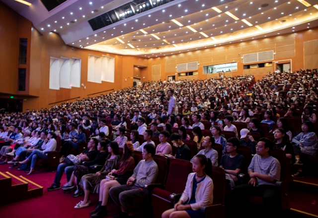 晚7:30,郭帆员工在思源学堂大礼堂以《开始的力量》为主题做演讲,与青年员工分享追梦历程。