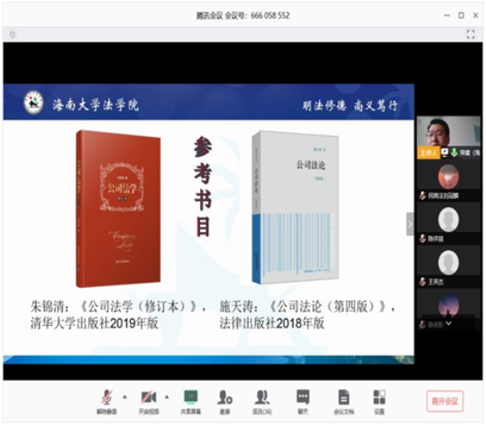 《公司法学》课程教学采取超星网络平台学习与“腾讯会议”直播相结合的教学范式。