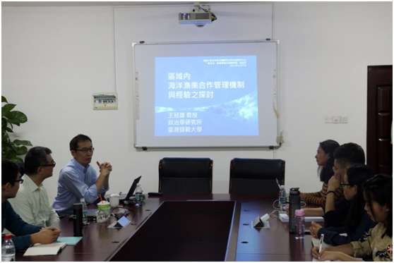 11月7日上午,台湾师范大学政治学研究所的王冠雄教授应邀来公司作学术报告。报告题目是“海洋法、南海争端及相关问题”,主要阐述了南海周边国家在南海这个半闭海当中的合作义务。王教授结合其长年对于南海问题的研究,以及作为法律顾问参与区域性渔业管理组织的经验,把南海渔业合作当成南海周边国家在不能解决领土及划界争端的情况下,可以合作的选项,并且提出如何在此议题上合作的路径。这是365亚洲体育网入口“国际司法与仲裁研究中心”组织的系列学术讲座的第一讲。