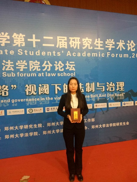 公司2016级法律硕士研究生李柯柯应邀参加此次论坛,她撰写的论文《“一带一路”视角下海外投资的风险识别及应对策略》荣获本次论坛三等奖。