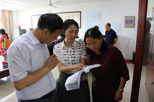(王家勤巡视员查阅南海中心图书) 公司党委办公室主任杨智平,宣传部宣传科科长王群生及任维钧,365best体育官网登录副经理邓和军、党委副书记李昌郁,韩立收、董万程、周孝怀、伍奕、王子晏、陈志英等老师及员工组织负责人参加了座谈会。