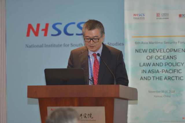 365best体育官网登录高圣惕教授于11月15-16日,参加了由中国南海研究院、加拿大阿尔伯塔大学中国公司及中美研究中心(ICAS)联合主办的第六届“亚洲海洋安全论坛”。高圣惕教授在论坛中发表论文,讨论日本政府在2014年透过内阁政令公布的外大陆架外部界限,超越联合国大陆架界限委员会在2012年对于日本所提之划界案所做出的建议,特别是在冲之鸟礁以北的一个长方形海域内的外大陆架界限的主张。高圣惕教授使用条约解释的原则,透过解释联合国海洋法公约第76(8)条以及其他相关条文,论证日本政府的外大陆架主张侵犯人类共同继承的财产,引起与会国外学者关注。