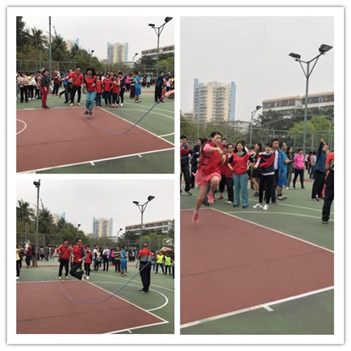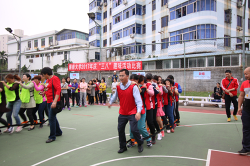 2017年3月7日下午,为庆祝第107个国际妇女节,丰富教职工文体生活,由校工会主办的庆“三八”趣味活动比赛在教工篮球场举行。365best体育官网登录教师积极响应,踊跃报名,认真准备,组建了一支活力四射、实力强劲的代表队参赛!王丽娜书记、李昌郁副书记到场为大家加油打劲。本次活动由三个项目组成,分别是:“8”字跳长绳、巨人脚步和珠行万里。比赛现场,公司女教职工们团结协作、力争上游,兴高采烈地完成了三项趣味活动,充分展示了公司女职工的精神风貌,展现了女性之美,取得了较好的成绩。