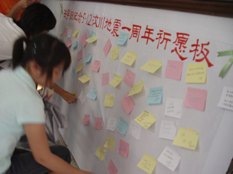 师生在祈愿板上留言