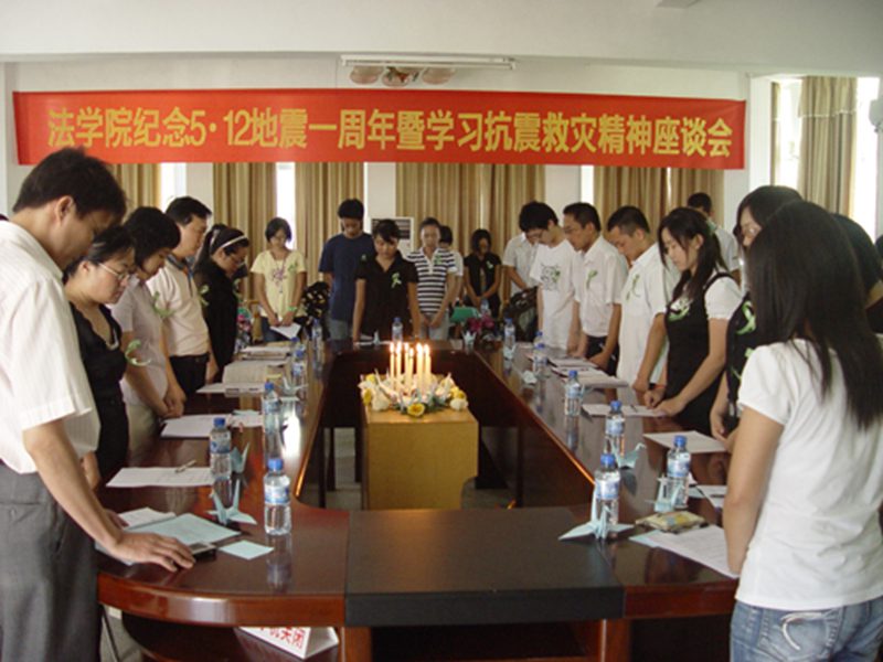 一年前,在汶川,一场特大地震,夺去了许多同胞的生命。又是一年的5•12,为纪念这个让13亿中国人为之痛心的日子,为学习和弘扬伟大的抗震救灾精神。365best体育官网登录团委、员工会特于5月12日下午14:28在公司会议室举行“365best体育官网登录纪念5•12地震一周年暨学习抗震救灾精神座谈会”。参加这次座谈会有365亚洲体育网入口团委蒙秋妍副书记、法公司党委韩力光副书记、365best体育官网登录老师代表伍奕副教授、365best体育官网登录学工办张晓凤老师。会议由院团委林勇老师主持。此外,参加此次会议的还有灾区员工代表、员工党员代表、员工干部代表、研究生代表、本科生代表等60多人。 会场摆放着蜡烛、鲜花、千纸鹤、绿丝带,寄托着大家的哀思。会议于下午14点28分准时进行,所有人胸戴绿丝带起立为在地震中死难的同胞默哀1分钟。当幻灯片《纪念5•12地震》再次展示地震惨烈画面和抗震救灾感人画面时,在场的人流下了伤感的泪水。当谢丹、郭雷两位同学朗诵《这一年,我们勇敢站起来!》时,仿佛把大家带回去年那不堪回首的一幕幕场景,大家在心里默默的为死者祈祷,祝愿生者坚强。随后,在场的师生从不同侧面谈自己的看法。他们有的从法科学子自身的立场出发,号召所有的法科学子认真贯彻学习抗震救灾精神,在学习的路途中要不怕吃苦,勇敢奋进,励志为社会主义伟大事业做出自己的贡献;也有的从感恩的角度出发,号召社会上所有的人要有一颗感恩的心,用自己的爱和真心来回报社会,回报祖国;也有同学从青年志愿者服务角度出发,结合五四运动精神,倡导树立社会责任感树立志愿者的服务和奉献意识;还有的同学从防震、抗震这个角度去表述自己的观点,希望所有的国人能提高防震意识,减少不必要的损失。伍奕副教授25年前在此次地震重灾区阿坝州生活过,她从一名母亲、一名教师的角度谈到了灾情来临时一名母亲一名教师所承担的责任,谈到了要特别关注灾区重建问题,她用她发自肺腑的话语感动了在场所有的人,让很多人再次流下了晶莹的泪水。 公司团委副书记蒙秋妍指出,在抗震救灾中涌现出许多感人的先进典型人物很好树立了共产党员、共青团员的“标杆”作用,希望各位员工党员、员工干部、团员青年在学习生活中都要树立“标杆”作用,并努力使青年大学“把爱国主义作为始终高扬的光辉旗帜、把勤奋学习作为人生进步的重要阶梯、把深入实践作为成长成才的必由之路、把奉献社会作为不懈追求的优良品德。”作为新时期青年老员工担任历史重任的基础。公司党委韩力光副书记在总结发言中指出,观看幻灯片《纪念5•12地震》,聆听诗歌《这一年,我们勇敢站起来!》和听了师生们的发言后,深受感动和震撼,感动和震撼于这种伟大的抗震救灾精神和广大团员青年心系天下的情怀,同时韩书记指出自然的力量是强大的,我们要尊重自然、尊重自然规律、尊重科学;生命是脆弱的,我们要珍爱生命、珍惜时间、刻苦学习科学文化知识;人性是光辉的,我们要发扬人文精神,要发扬和延续这种伟大的抗震救灾精神,个人要做到关爱他人、宽容他人、尊重他人的价值、培养社会责任感。 座谈会结束时,参加座谈会的师生在“365best体育官网登录纪念5•12地震一周年祈愿板”上留言,为汶川、为四川、为祖国送上自己的祝福。 时光飞逝,光阴荏苒。当所有往事都随风飘去的时候,人们仍不能释怀那个“国殇日”——2008年5月12日。可我们不会沉浸在痛苦中,而是要擦干眼泪对自己说我们不哭!我们要继续发扬抗震救灾精神,让我们的努力为世人撑起一片和谐的天! (图文/团学宣传部胡小慧 王鑫)