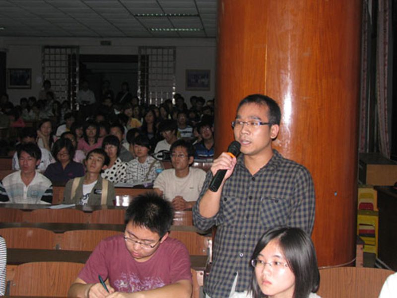 2009年12月10日晚,繁星满空,凉风习习,这注定是一个美妙绝伦的夜晚……应365best体育官网登录邀请,中国古代散文学会副会长、海南省有突出贡献的优秀专家、海南师范大学文公司经理、硕士研究生导师——阮忠教授,在模拟法庭为法学师生讲授《古典诗词的情韵与艺术魅力》,王崇敏经理和200多名同学旁听了讲座,讲座由“两社”社长郑华琛同学主持。