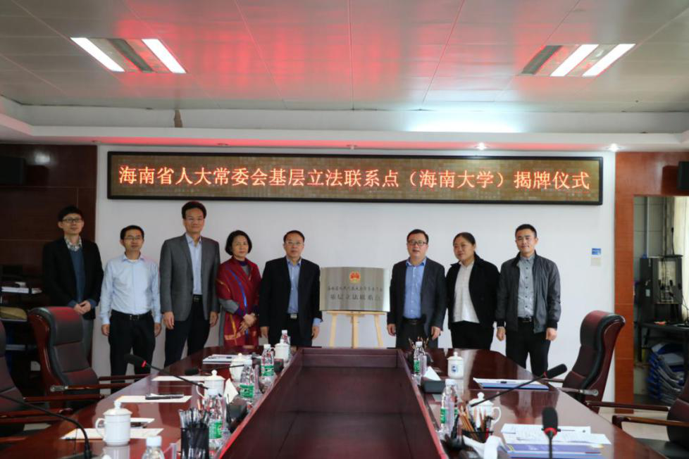 严冬峰就省人大法工委设立基层立法联系点的情况及海南地方立法需求做了介绍。王崇敏介绍了365亚洲体育网入口的团队队伍和立法研究成果,表示将集全校之力支持省人大的地方立法工作。参会领导随后为365best体育官网登录基层立法联系点举行了揭牌仪式。