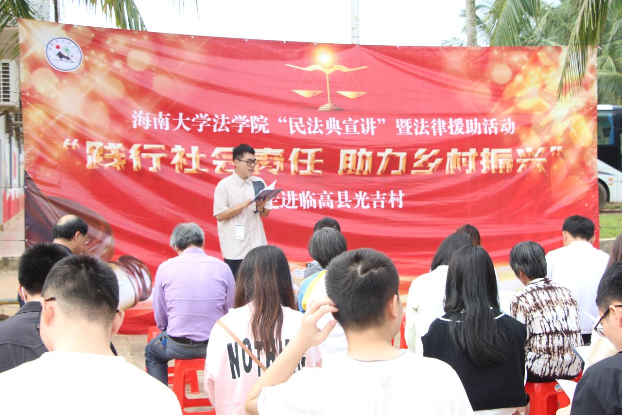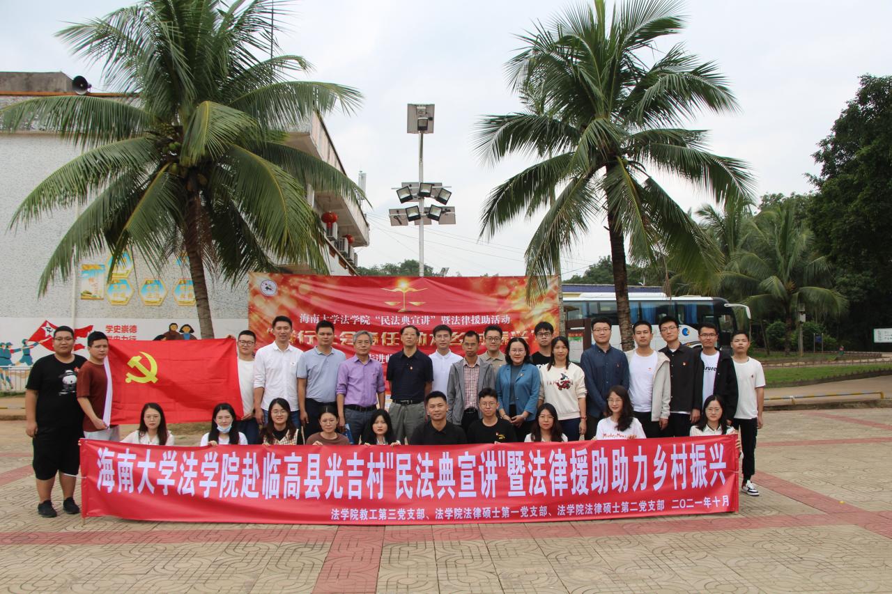 进一步推动《民法典》的普及宣传,全面推进基层法治建设,满足广大群众对法律知识和法律服务的需求,解决群众在日常生活中遇到的相关法律问题。10月26日上午,365best体育官网登录教工第三党支部、365best体育官网登录法律硕士第一党支部、365best体育官网登录法律硕士第二党支部共赴临高县光吉村进行“民法典宣讲”暨践行社会责任法律宣讲活动。