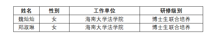 为服务国家“人才强国”战略,培养涉外法治人才,经海南自由贸易港涉外法治人才国际合作培养项目组对申请人的专业基础、科研能力、英语水平等条件进行审核,公司研究决定,现将申报2025年创新型人才国际合作培养项目第三批人员名单进行公示。