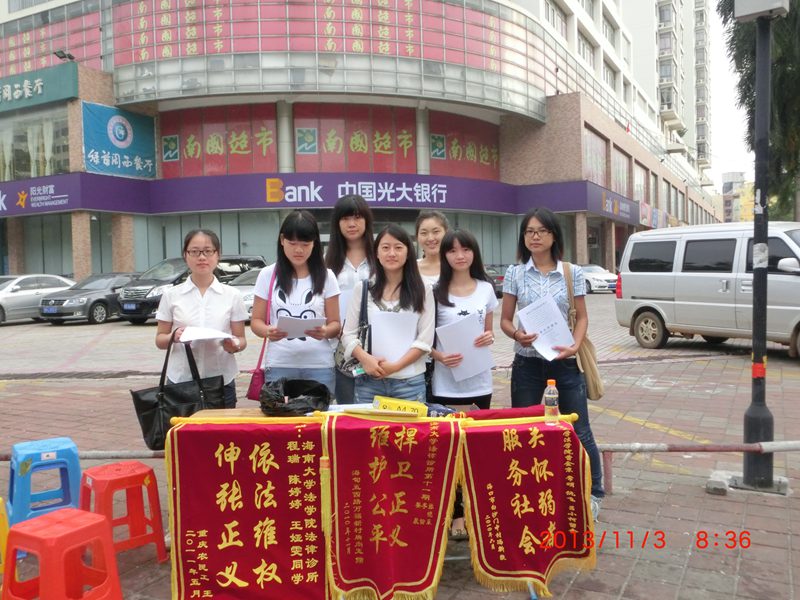 法律诊所第18期在海甸三东路口法律宣传活动
