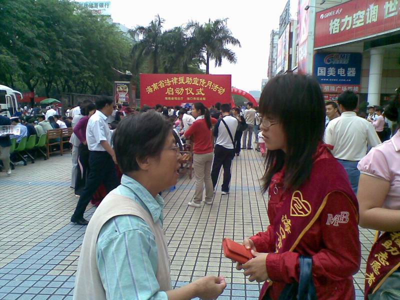 4月6日上午海南省省法律援助宣传月活动在明珠广场正式启动,法律诊所的24名同学作为志愿者参加了启动仪式,为法律援助活动进行宣传,为市民提供法律咨询。