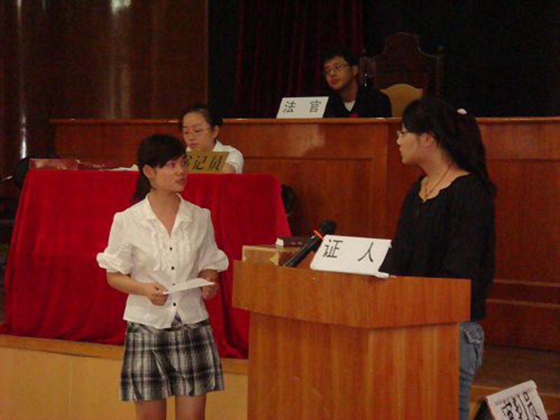2009年6月25日下午,经过第九期学员们精心准备,在模拟法庭内进行了英美式的模拟审判。案件改编自张卫老师给的案例,张卫老师、董万程老师、伍奕老师、李方老师还有叶英萍老师对庭审模拟过程进行了点评。模拟审判是诊所课程中的一项必修科目,通过模拟审判,学员们可以更加直观的了解熟悉办案流程与司法实务,培养动手能力和团队精神。每期诊所都将进行两次模拟审判,中期一般为大陆式模拟审判(以我国为主),在期末时还将进行一次英美式的模拟审判。