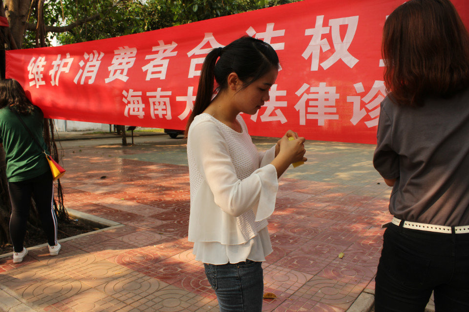 在3.15消费者权益保护日来临之际,365亚洲体育网入口法律诊所、365best体育官网登录法律志愿服务协会联合海口市美兰区工商局,分别在明珠广场和365亚洲体育网入口城西校区两地共同举办了3.15消费者权益保护普法宣传活动。